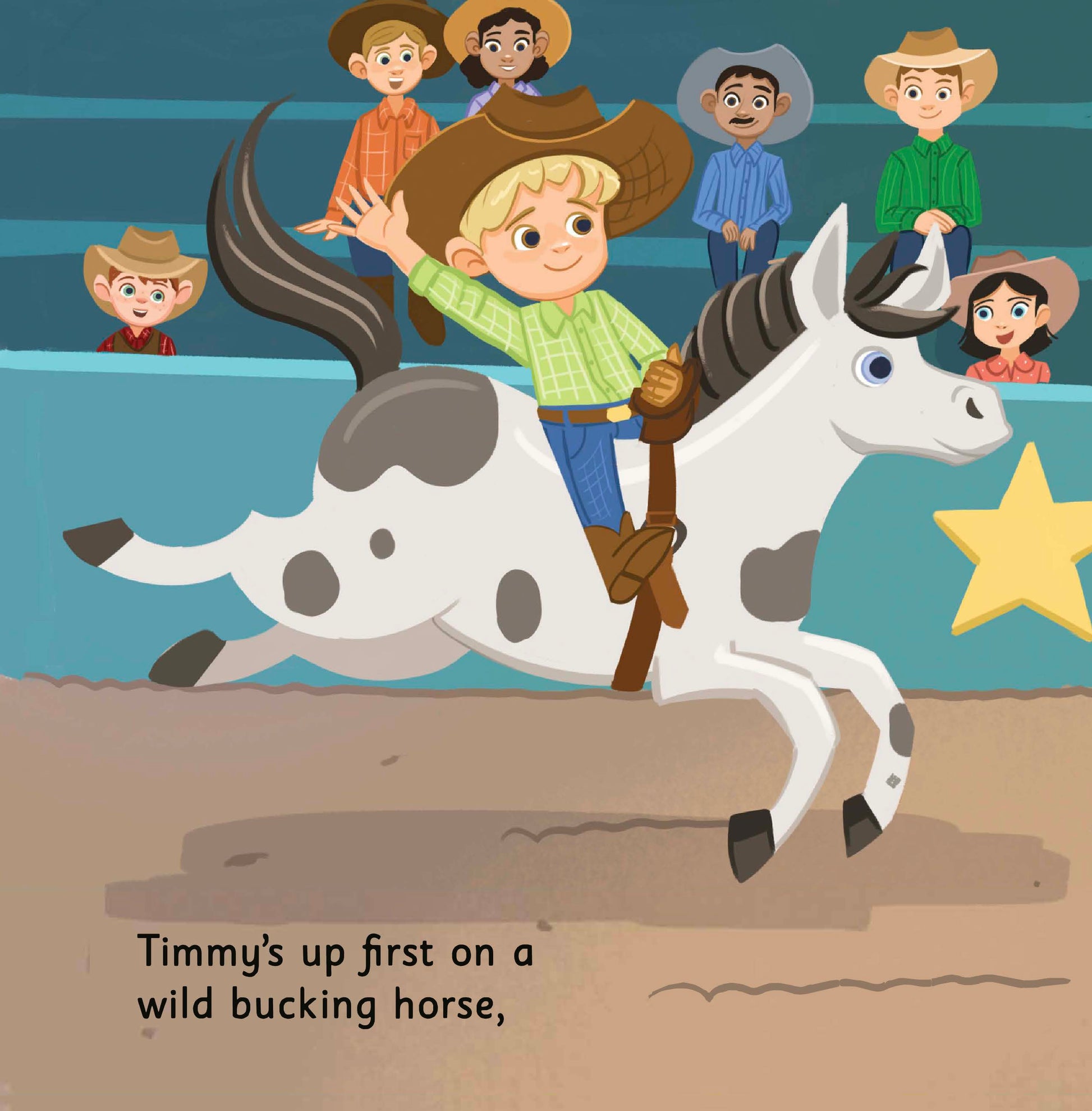 His friends Vera, Callie, Timmy, and the Team Roping Twins will be there competing in all the classic rodeo events, and he gets to ride his very first sheep! 🐑